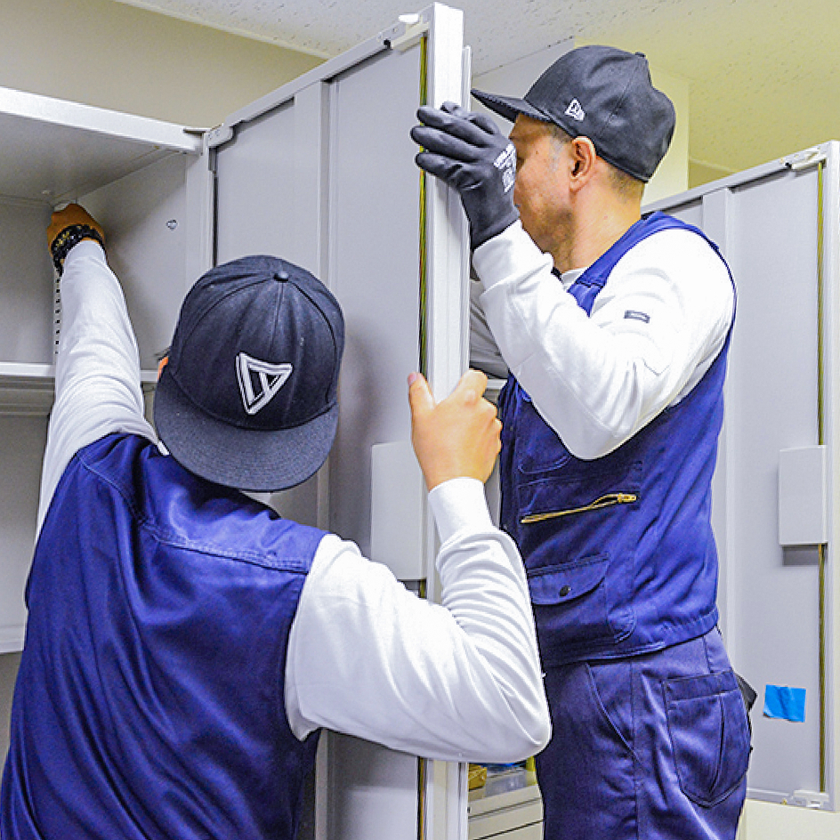 オフィス移転の際、お客様の荷物の運搬、移動をサポートいたします。「荷物・什器・家具を引越前よりもきれいに片付ける」をモットーに、クリーニング・清掃・ダブルチェックを行うなど、きめ細やかに対応いたします。基本的には、お客様がご用意する図面に基づいてレイアウトを変更し、荷物や什器を配置していきますが、現場において急遽、施工が発生するケースもあります。イーストアップでは、技術力のある職人が引越、レイアウト変更作業を実施するので、必要な工事を現場の状況に合わせてスピーディーに行います。